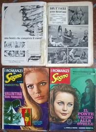 Riviste fotoromanzi - I Romanzi di Sogno degli anni 60-70 Disponibili riviste fotoromanzi - I Romanzi di Sogno degli anni 60-70. sono circa 19 numeri. I Romanzi di Sogno (19) n. 129 Una bambola bionda pp. 56 (fine fotoromanzo) / 64 (articoli, annunci) n. 141 Agguato all'amore pp. 56/64 n. 146 Una vita per morire pp. 56/64 n. 151 Fango sulle tue ali pp. 56/64 n. 161 Non mi dire t'amo pp. 56/64 n. 169 Nel giorno delle nozze pp. 56/64 n. 177 Il fiume della vita pp. 56/64 n. 178 Un amore da 10000 dollari pp. 56/64 n. 180 Gratta cielo per 2 pp. 56/64 n. 186 I disperati pp. 58/68 n. 188 Un pullman che si chiama destino pp. 58/68 n. 195 Ombra pp. 56/64 (mancan p.57-58) n. 204 Il Gitano pp. 54/64 n. 225 Il Re si diverte pp. 54/64 n. 226 Prima che sorga la luna pp. 50/64 n. 231 La vita di Bohème pp. 56/64 n. 241 La grande rinuncia (copertina sbagliata?) * Non e' facile avere diciott'anni pp. 55/64 n. 262 Il ponte vicino alle stelle pp. 54/64 n. 272 Valentina non piangere pp. 49/64 condizioni : buone, alcune pagine staccate dal dorso, pagine ingialliti, strappi (con/senza scotch), strappetti, pieghe, macchie, scritture, sciupata.. difetti dovuti alla lettura e al passare degli anni
