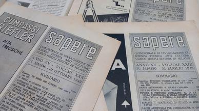 Lotto di 4 riviste SAPERE - quindicinale di divulgazione di scienza, tecnica, arti e cultura, Ulrico Hoepli Ed. Milano, anni 1949 e 1950.