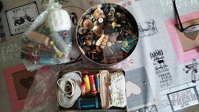 vendo in blocco cose per il cucito , una scatola piena di bottoni, aghi ditali cotoni be altro