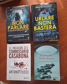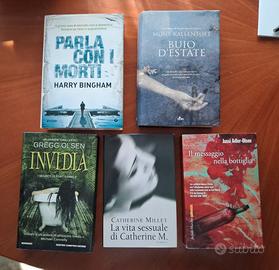 Cedo per fare spazio in libreria i seguenti romanzi: ANTONIO FUSCO i gialli del “commissario Casabona”: • IL METODO DELLA FENICE • LE INDAGINI DEL COMMISSARIO CASABONA Copertina: flessibile illustrata - Stato: pari al nuovo - Euro 6 ogni volume PATRICIA CORNWELL: • LA TRACCIA • CAOS • CALLIPHORA Copertina: cartonata con sovracopertina - Stato: ottimo (salvo “la traccia con sovracopertina un po' usurata) - Euro: 6 ogni volume DOLORES REDONDO: • INCISO NELLE OSSA • TUTTO QUESTO TI DARO' Copertina: cartonata con sovracopertina illustrata - Stato: pari al nuovo - Euro 6 ogni volume BRIAN MCGILLOWAY: • NON PARLARE • URLARE NON BASTERA' Copertina: cartonata con sovracopertina illustrata - Stato: buono - Euro 5 ogni volume JUSSI ADLER OLSEN: IL MESSAGGIO NELLA BOTTIGLIA (editore Marsilio – 2013) Copertina flessibile illustrata - Stato: usato in buono stato - Euro: 5 CHATERINE MILLET: LA VITA SESSUALE DI CATHERINE M Copertina: rigida con sovracopertina - Stato: ottimo - Euro: 5 KALLENTOFT: BUIO D'ESTATE Copertina: rigida con sovracopertina - Stato: ottimo - Euro: 5 GREG OLSEN: INVIDIA Copertina: rigida con sovracopertina - Stato: ottimo - Euro: 5 HARRY BINGHAM: PARLA CON I MORTI Copertina: rigida con sovracopertina - Stato: ottimo - Euro: 5 GRAZIA VERASANI: SENZA RAGIONE APPARENTE Copertina flessibile illustrata - Stato: buono - Euro: 5 TESS GERRITSEN: IL CHIRURGO Copertina flessibile illustrata - Stato: buono - Euro: 4 PATRICIA D. BENKE: IO HO VISTO Copertina flessibile illustrata - Stato: ottimo - Euro: 4 CHARLES TODD: DELITTO DAL PASSATO Copertina flessibile illustrata - Stato: ottimo - Euro: 4 Condizioni dei volumi: ottime o buone (come da fotografie) spedizione a carico dell'acquirente Contattabile anche tramite bolognarb@gmail.com o 3343165356 Ogni libro ha il suo prezzo (leggermente trattabile per MULTIPLI)