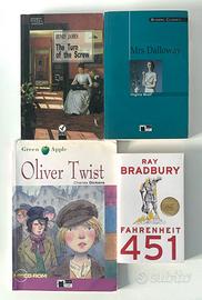 In questo annuncio dedicato ai romanzi in inglese vendo anche singolarmente: A euro 2,50 l’uno: Edizioni Black Cat Virginia Woolf “Mrs Dalloway” Charles Dickens “Oliver Twist” AA. VV. “Classic detective stories” Mary Shelley “Frankestein” Agatha Christie “Death on the Nile” Charlotte Bronte “Jane Eyre” “Beowulf” Daniel Defoe “Robinson Crusoe” Oscar Wilde “The Canterville Ghost” e “The picture of Dorian Gray” Bram Stoker “Dracula” “Tristan and Isolde” Edizioni Liberty William Shakespeare “Macbeth” Jonathan Swift “The Gulliver’s travels” Charlotte Bronte “Jane Eyre” Frances Hodgson Burnett “The secret garden” Altre edizioni: Ray Bradbury “Fahrenheit 451” Mary Shelley “Frankestein” Arthur Conan Doyle “The Case-book of Sherlock Holmes” James Joyce “Dubliners” Henry James “The turn of the Screw” Anna Sewell “Black beauty” Oscar Wilde “The art of giving. Four fairy tales” Roald Dahl “Kiss kiss” Mark Haddon “The curious incident of the dog in the night-time” Si effettuano spedizioni con piego di libri ogni giovedi Si accetta paypal o bonifico non è possible utilizzare tuttosubito per motivi organizzativi Consegna a mano a Senago (MI) Per ogni acquisto e’ obbligatorio premere esclusivamente il tasto “contatta il venditore” Vendo piu di 1200 libri! Sfoglia i miei annunci!