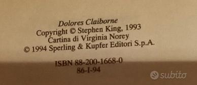 Romanzo Stephen King Dolores Claiborne 1a edizione, buone condizioni, anno 1994, casa editrice Sperling & Kupfer. Prezzo 50€ trattabili.