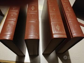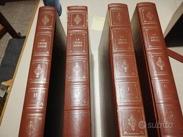 Sacra Bibbia composta da 4 volumi con copertina e custodia in similpelle del 15/04/1975 Alfredo Magarotto. Traduzione secondo la vulgata di Mons. Antonio Martini Arcivescovo di Firenze. Tavole Gustavo Dore'. Non sono mai stati usati ma esternamente presentano un po' di usura del tempo, come si vede sulle copertine.