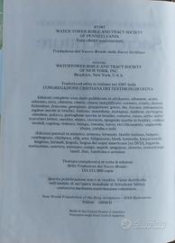 Sacre Scritture traduzione del Nuovo Mondo. Questa è la revisione del 1987 della versione riveduta in base alla versione inglese del 1984, ma con la fedele consultazione degli antichi testi ebraico e greco.