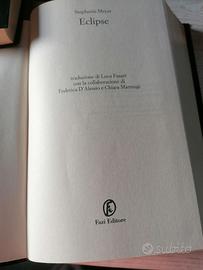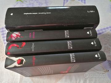 Vendo la serie completa di Twilight di Stephenie Meyer: Twilight, New Moon, Eclipse e Breaking down; Fazi Editori. Tutti in lingua italiana e in ottime condizioni senza scritte, orecchie, strappi. La storia è bella e avvincente tra umani, vampiri e licantropi.
