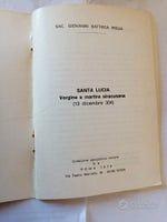 SAC. GIOVANI BATTISTA PROJ. Santa Lucia Vergine e Martire siracusana (13 dicembre 304). Collezione agiografica romana n° 6. Roma, s.n.e., 1979. In-16° (cm 16,70), 47 pagine con 8 illustrazioni nel testo. Brossura editoriale illustrata con l'immagine di S. Lucia venerata nella Basilica di S. Nicola in carcere a Roma. Lievi tracce del tempo e ingiallimento sui piatti, ottimo l'interno. NOTA: Spese di spedizione come piego di libri NON TRACCIATO € 1,50. In raccomandata come piego di libri TRACCIATA € 5,00.