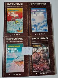 FANTASCIENZA - EDITRICE LIBRA COLLANA SATURNO DAL 1977 AL 1981 DAL N. 1 AL 23 -OTTIME CONDIZIONI - QUASI TUTTI NON LETTI CON COPERTINA RIGIDA E SOVRACOPERTINA - AUTORI VARI COME JIMMY GUIEU, VARGO STATTEN, LEIGH BRACKETT, JOHN WINDHAM, HAL CLEMENT. BRUNITURA DEL BORDO PAGINE SUPERIORE.