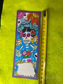 Lo sai che la maggior parte delle donne ama il personaggio di Frida Khalo? Non c’è dunque modo migliore che farle un pensiero speciale, anche perché interamente realizzato a mano. Questo segnalibro rappresenta la nostra Friducha in versione calavera mexicana e ha i colori vivissimi come quelli che utilizzano in Messico per le loro opere d’arte. Non esitare, il pezzo è unico e il prezzo speciale! Spazio in basso per mettere il nome della persona a cui è destinato o una parola speciale che vuoi dedicarle.