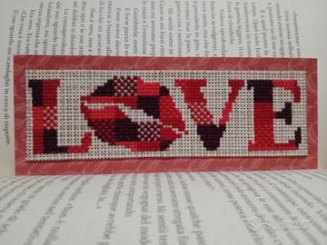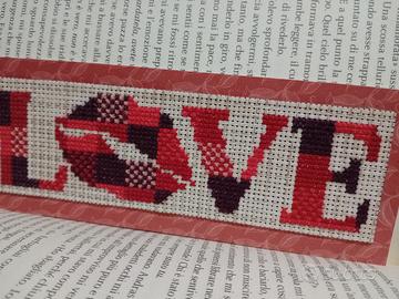 segnalibro in love ricamato a punto croce. una bella idea per San Valentino