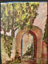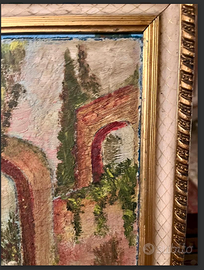 SENSAZIONALE e MAESTOSO dipinto ad olio su tela raffigurante "PAESAGGIO con ARCHI, FIRMATO, racchiuso in PREZIOSA cornice dorata. ANTICO/VINTAGE riconducibile alla fine del XIX secolo. CONDIZIONI: ottimo stato conservativo ma essendo un articolo antico/vintage può presentare i lievi segni del tempo che ne attestano l'originalità e il fascino. Proveniente da collezione privata Villa Veneta del '900. MISURE: L31xh40xp2cm c.a.
