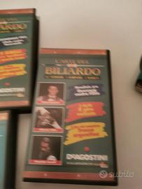 21 cassette video con partite di biliardo anni 70/80 anche campinato del mondo più video lezioni di biliardo con allegato collana completa di riviste uscito nelle cartolerie prodotto da De Agostini editore ,tutto in ottimo stato