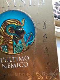 6 libri della saga Ramses di Christian Jacq. Pagine ingiallite ma perfettamente leggibili. Una copertina presenta una piegatura