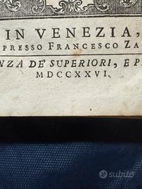 Bellissimo esemplare antico del libro "Sermoni del Padre Luigi Bourdaloue," Parte Prima, stampato a Venezia nel 1726.