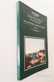 Catalogo originale d'asta Sotheby's Zurigo (Codice asta: "Cannes"), relativo alle sessioni del 19 e 20 Giugno 1987 tenutesi presso l'Hotel Baur au Lac. Il volume raccoglie le collezioni "Schweizer Kunst und Helvetica" (Arte Svizzera dal XVIII al XX secolo) e "Feine Möbel" (Mobili pregiati, tappeti e oggetti d'arte). Il testo, in lingua tedesca, è corredato da immagini in bianco e nero e a colori. Tra i lotti illustrati e descritti figurano opere di maestri svizzeri come Alexandre Calame (es. Meeresbucht bei Cannes, lotto 54) ed Edmond de Pury (Jeune Pêcheur, lotto 63), sculture di Hermann Haller, opere su carta di Hans Rohner e antiquariato di alta ebanisteria, inclusa una commode Louis XV firmata P. Denizot. Indispensabile per galleristi e ricerca provenienza opere.