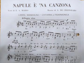 spartito musicale originale del brano “Napule è 'na canzone”, con musica di A. De Cristofaro e testo di E.A. Mario, un omaggio alla tradizione musicale napoletana.