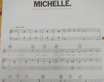 spartito musicale originale della celebre canzone “Michelle” dei The Beatles, arrangiato per canto, pianoforte e chitarra.