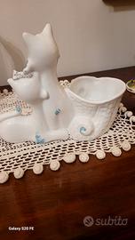 coppia di gatti innamorati ,porta fiori in ceramica di bassano Italy,