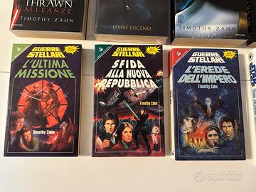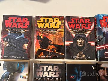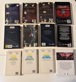 Vendo stock (solo in stock) di 12 libri STAR WARS, tutti in buone condizioni generali, tenuti bene, alcuni (è indicato) hanno il cellophane messo da me contro l'eventuale polvere e dietro si possono vedere dei pezzettini di scotch di carta sul cellophane, non sulle copertine ovviamente.