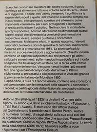 Specchio curioso ma rivelatore del nostro costume, il calcio continua ad alimentare tutta una colorita serie di "eroi", di miti e di leggende. Eppure il conflitto tra le ragioni dello sport e quelle dell'affarismo è andato sempre più inasprendosi, e lo spettacolo sportivo si è affermato come imponente "business" per i suoi protagonisti e ispiratore di realtà artificiali per il pubblico. Nel tracciare la storia dello sport più popolare, Ghirelli non ha dimenticato questi aspetti sociali che diventano la cornice di una narrazione piacevole e vivace. Molti, sono infatti, in questo racconto, i risvolti umoristici, le rievocazioni di episodi e di campioni memorabili.