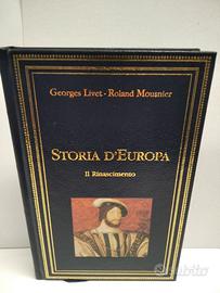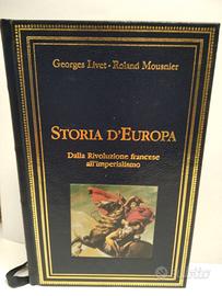 6 libri splendidamente rilegati con copertina rigida della storia dell'europa. bella immagine sullo scaffale.