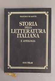 "Storia della letteratura italiana e antologia" di Francesco De Sanctis. Edita da Velar (1990), composta da 5 volumi con copertina rigida. Il quinto volume, a cura di Caterina Bassi ed Elio Conte, è dedicato al Novecento. Tutti i volumi sono in ottime condizioni