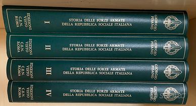 Storia delle Forze Armate della Repubblica Sociale Italiana di Giorgio Pisanò. Prima Edizione del 1967, pubblicata dalle Edizioni Visto. La serie è completa in quattro volumi, copertina rigida.