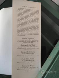 Storie dei Grandi Paesi, Garzanti Editore, 1965-1967. Volumi 5. Con copertina rigida in tela verde e sopraccoperta. Ampiamente illustrati in nero, con tavole a colori e cartine fuori testo. Condizioni ottime. Spese di spedizione 20 euro (maggiorazione di tre euro richiesta per Calabria e isole). Ritiro gratuito in zona. Piano dell'opera: 1) TREVELYAN George, Storia di Inghilterra. Seconda edizione ampliata, 1966. Con 241 illustrazioni in nero, 32 tavole a colori, 37 cartine. Pagine XVI-880