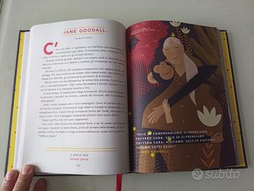 "Storie della buonanotte per bambine ribelli". Un bestseller internazionale scritto da Elena Favilli e Francesca Cavallo. Editore Mondadori. Copertina rigida. Lingua italiano. Anno 2017. Pagine 212. Peso grammi 700. Condizioni ottime. Questa raccolta non contiene le classiche fiabe di principesse che aspettano di essere salvate, ma propone 100 storie vere di donne straordinarie del passato e del presente che hanno cambiato il mondo con il loro coraggio e determinazione. Contenuto: Presenta 100 biografie brevi di icone come Rita Levi Montalcini, Frida Kahlo, Malala Yousafzai, Margherita Hack e Serena Williams. Illustrazioni: Ogni storia è accompagnata da un ritratto unico creato da una delle 60 illustratrici provenienti da tutto il mondo coinvolte nel progetto. Autrici: Elena Favilli (giornalista) e Francesca Cavallo (scrittrice e regista) sono le due imprenditrici italiane che hanno ideato il progetto, inizialmente finanziato attraverso una storica campagna di crowdfunding che ha raccolto oltre un milione di dollari. Messaggio: Il libro è un manifesto di empowerment femminile, pensato per ispirare bambine e bambini a sognare in grande e lottare per i propri ideali, superando gli stereotipi di genere.