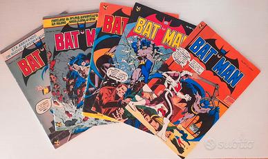2 lotti di albi, prezzo € 3,00 - € 4,00 a seconda delle condizioni. Superman Cenisio: 6, 63, 64, 65, 68, 69, 70 (2 copie), 72, 75, 80, 81, 82, 83 Gli albi si presentano in condizioni mediamente buone, alcuni ottimi. Un paio presentano strappi e biro in quarta. Per le condizioni dei singoli albi posso mandare ulteriori foto. Batman Cenisio: 11, 12, 17, 19, 21 Condizioni generali discrete/buone. Albi integri e senza mancanze. Da segnalare soprattutto macchiette, segni del tempo e uno con segno di biro. Per le condizioni dei singoli albi posso mandare ulteriori foto.