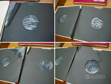 Interessante libro "musicale" di grande formato (30x30cm circa) rilegato in modo elegante, dotato di cofanetto protettivo, con 4 dischi in vinile allegati e relativo contenitore cartonato. Opera originale del 1967 come risulta dalla numerazione con firma autografa stampata dello stesso autore. Lievi segni del tempo, leggera fioritura sporadica della carta, pagine custodia dei dischi con evidenti strappi come risulta dall'apposita immagine pubblicata. Il volume è molto bello ed è corredato da parecchie illustrazioni/fotografie storiche del tempo della guerra. Preferisco il ritiro di persona in modo che l'insieme possa essere visto e valutato direttamente. Posso comunque anche spedire in seconda battuta.