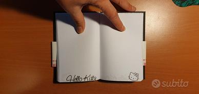 Taccuino Hello Kitty con elastico di chiusura e fogli bianchi con logo.