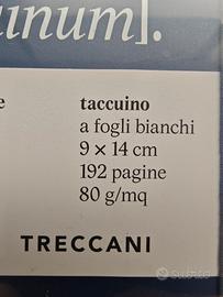 Taccuino piccolo a fogli bianchi Treccani. Mai aperto , perfetto con la sua plastica originale.