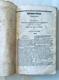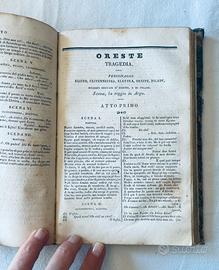 “Tragedie tutte di Vittorio Alfieri da Asti” (è una raccolta ottocentesca molto diffusa delle opere teatrali di Vittorio Alfieri. Editore Molini, Firenze, anno 1837 Legatura mezza pelle, carta spessa Frontespizio con dicitura “da Asti” Copertina slabbrata ai bordi e agli angoli come da foto. Pagine integre con macchie di umidità. Buono stato, vista l’età!