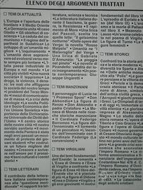 TEMARIO utilissimo di ben 250 PAGINE per la scuola superiore, con ben 76 temi GIA' SVOLTI, corredati di scaletta e suddivisi in diverse sezioni (attualità, letterari, manzoniani, virgiliani, storici) come nuovo (mai usato).