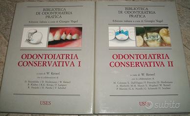 ODONTOIATRIA CONSERVATIVA I e II, di W. Ketterl, edizione italiana a cura di Giorgio Vogel, edizioni USES del 1990 per la Biblioteca di Odontoiatria Pratica. Entrambi i volumi ion condizioni perfette, quasi come nuovi. Rilegati con copertina rigida telata e sovracopertina di carta. Riccamente illustrati, 276+344 pagine.