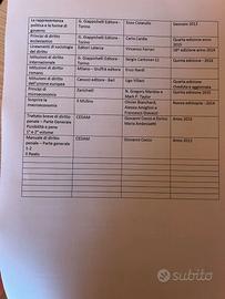 vendo testi universitari per facoltà giurisprudenza descritti in elenco al prezzo del 50% di quello indicato in copertina. Foto a richiesta. Per info 3346923052 su whastsapp o tramite subito. Spedisco con subito o come preferite. E' gradito anche ritiro in loco. Allegate foto di 4 dei 21 libri in vendita