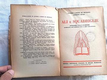 Interessante copia d’epoca fascista del testo “ALI E SQUADRIGLIE” scritto da Saverio Laredo De Mendoza e Alfredo Russo edito in prima edizione nel 1933 da “IMPRESA EDITORIALE ITALIANA IN MILANO”. In particolare a rendere ancora più raro ed esclusivo il predetto testo, è il fatto che lo stesso sia appartenuto al noto Ufficiale pilota della Regia Aeronautica EUGENIO GEYMET. Il testo in argomento, che reca anche un timbro coevo “a secco” nella contro-pagina di presentazione, con la seguente dicitura “SOCIETÀ ITALIANA DEGLI AUTORI ED EDITORI” (“SIAE” dal 1926 al 1942”) con proprio logo epocale, si compone di 360 pagine con di scritti sul volo con poesie e prose di Castrense, Civello, De Bosis, Mecozzi, Milanesi, Trilussa, Guido Keller, Nosari, Salvaneschi e numerosi interventi di F.T. Marinetti, fra cui il capitolo "Futurismo e aviazione" con 4 testi e Manifesti futuristi e rilegatura in brossura. Il cimelio cartaceo si presenta in “DISCRETE” condizioni di conservazione, con evidenti segni del tempo, come l’ingiallimento in alcuni punti delle pagine all'interno del testo e la screpolatura in alcuni punti della copertina e del bordo pagine, lo scollamento della sola copertina, tuttavia non presenta pagine o parti mancanti. Misure: 210 mm x 145 mm.