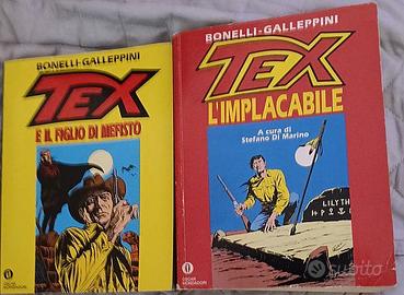 9 testi di collane varie -1. Oscar Mondadori: El Morisco - Tex e il figlio di Mefisto - Tex l'implacabile - I figli della notte - Copertina flessibile - 2. Gianluigi Bonelli, Guido Nolitta, Aurelio Galleppini Tex: I grandi nemici, SuperMiti Mondadori, 2006 - Cartonato - 465 pagine - 3. Tex nr. 575 - Sul sentiero dei ricordi (storia completa a colori) – 4. Tex 455 Vendetta Navajo - 5. SuperTex nr. 100 Fort Apache – 6. Romanzo di Gianluigi Bonelli: Il massacro di Goldena (Romanzo di G.L. Bonelli).