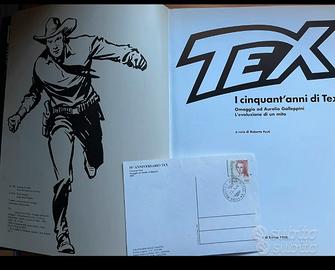 I Cinquant'anni di Tex, + cartolina commemorativa come da foto. Buono stato, presenti lievi segni del tempo passato sulla copertina come da foto.
