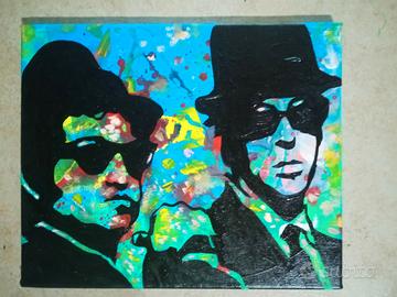 Dipinto in acrilico su tela con telaio 24 x 30 cm firmato da Roberto Scala artist tutto fatto a mano non è una stampa con certificato di autentica per chi vuole anche su commissione realizzo 90x65 cm sempre su tela con telaio prezzo da concordare The Blues Brothers, che conquistò il Guinness dei primati per la scena con il maggior numero di incidenti d'auto, costò circa 30 milioni di dollari, stentando inizialmente al botteghino. In poco tempo, tuttavia, si formò un culto intorno alla pellicola. Il 20 e 21 giugno 2012, in occasione del centenario della major produttrice e del trentennale della morte di John Belushi, il film è stato riproposto in versione restaurata in tutto il mondo