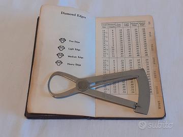 Vendo un libro "The Moe diamond weight gauge" di Charles Moe stampato nel 1951 Completo di calibro per la stima di pesi e carati di diamanti, con tabelle relative ai vari formati di pietre preziose In buone condizioni con segni come da foto dimensioni 13,3 x 7 cm Posso spedire