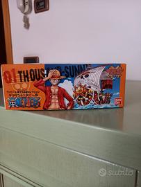 Kit completo per nave Thousand Sunny di ONE PIECE. Equipaggio Mugiwara. Scatola in perfetto stato 2 confezioni sigillate contenenti i pezzi da montare. Istruzioni. Imballo Perfettamente e spedisco subito.