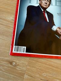 Copertina rigida e iconica con ritratto di Donald Trump, realizzata in tipico stile TIME, con impaginazione e stampa di alta qualità.
