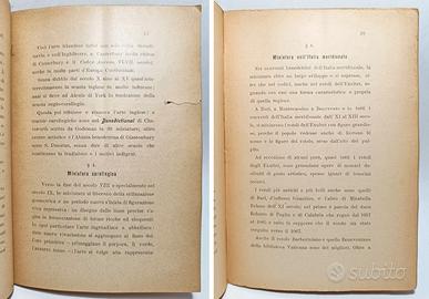 GRAZIANI RAFFAELE TRAMONTO D’UN’ARTE TIP. L. CAPPETTA, LUCERA, 1912 In 8° (21x15 cm), pp. (6) 60 (6), brossura editoriale originale con illustrazione di R. Graziani, 2 tavole ripiegate, 1 con “Prospetto storico della miniatura nei secoli passati”, 1 con “MINIATURA IN ITALIA” Parte Prima: CENNI STORICI Parte Seconda: NOTIZIE TECNICHE Brunitura alle pagine, due pagine con piccolo strappo al margine. Ottime condizioni MOLTO RARO Euro 80,00 + s.s. LIBRO RARO STORIA MINIATURA ANTICA MANOSCRITTI MINIATI ARTE #robertolibri 766