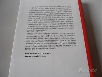 Tre libri nuovi di Salvatore Brizzi: - "Le sette iniziazioni e come prepararle" Il libro spiega come mettersi al servizio di quella che è conosciuta come la Fratellanza Bianca del pianeta, un ordine composto da maestri spirituali che hanno sempre promosso e organizzato lo sviluppo della coscienza dell’umanità nel corso dei millenni. L’’evoluzione spirituale dell’umanità non è affidata al caso o all’iniziativa dei singoli, ma procede secondo un piano preordinato che prevede Iniziazioni ben precise, attraverso cui un discepolo deve a un certo punto passare se vuole progredire e diventare sempre più capace di servire i suoi simili. - "Io sono il padrone della mia anima. Primi dialoghi con Victoria Ignis" Alla precedente edizione sono stati aggiunti l’Introduzione e il capitolo “La sofferenza e il coraggio”, non presenti nella prima versione. I primi incontri con l’iniziata Victoria Ignis, che per diversi anni svolgerà nei confronti delll'Autore il ruolo di maestra spirituale, trasmettendogli i principi del lavoro su di sé e sottoponendolo a prove di vario genere. Tali incontri vengono descritti dall’autore come «a metà strada tra il reale e l’irreale. Pur essendo seduti insieme al tavolino di un bar o sui sedili di un treno, lo scorrere del tempo era alterato. Talvolta, dopo aver trascorso una giornata insieme a lei, l’esperienza assimilata dal mio cervello fisico si poteva riassumere in poche frasi, mentre altre volte, quando tornavo a casa ero in grado di riportare sul quaderno dei miei appunti ogni sua singola parola». - "Come la pioggia prima di cadere. Appunti di non-dualità" Come rendere comprensibile l'insegnamento tradizionale più elevato: la filosofia della non-dualità. Disponibili altri testi dell'Autore nel canale. Spedizione con TuttoSubito. A richiesta con pacco raccomandato (€ 5,00).
