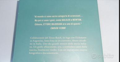 1) "Il caso Majorana Pelizza. Raggio della morte, energia infinita, antimateria: inchiesta giornalistica sui misteri di una macchina leggendaria" di Rino Di Stefano. Nuova edizione. 2) "La seconda vita di Majorana" di Giuseppe Borello, Lorenzo Giroffi e Andrea Sceresini. "Chi ha visto Majorana? A rispondere ci hanno provato in tanti (films, indagini giornalistiche), ma la verità su Ettore Majorana (Catania 1906-?), geniale fisico italiano, non è mai venuta fuori. Tante ipotesi, le più svariate, dal suicidio alla fuga in altri paesi, al ritiro in un convento. Questo libro offre una nuova verità. Nel 2015 la magistratura, sulla base di una nuova testimonianza, aveva accertato la permanenza del grande scienziato italiano in Venezuela, e là gli Autori si sono recati ad indagare, incontrando figli e nipoti degli ultimi testimoni che hanno visto Majorana in vita dopo la fuga. Un vero scoop internazionale: finalmente si sono ricostruiti i misteri di una scomparsa legata a molti, inquietanti motivi. Un racconto agile, ricco di colpi di scena; un reportage, tra attualità, storia e verità giudiziarie, con un inserto fotografico e documentario in parte inedito. Prefazione di Salvatore Maiorana. 3) "La banda di via Panisperna. Fermi, Majorana e i fisici che hanno cambiato la storia" di Giorgio Colangelo e Massimo Temporelli. Roma, primi anni Venti. Nel vecchio istituto di fisica di Via Panisperna un gruppo di studenti guidati da Enrico Fermi scopre la chiave per violare i segreti del nucleo atomico. Quei ragazzi diventeranno i protagonisti della nascita della fisica moderna nei momenti fondamentali dal fascismo al boom economico, alla II Guerra Mondiale e all'era atomica, fino alla Guerra Fredda. Una storia di gioventù e amicizia, sogni e ambizioni, misteri e domande, a cui non si è ancora trovato risposta. Libri come nuovi, non usati (da magazzino). Se richiesto, spedisco anche con pacchetto raccomandato (€ 5,00).