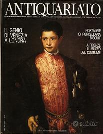 Tre copie della rivista ANTIQUARIATO, mensile di arte antica, arti decorative, cultura e collezionismo pubblicata da Giorgio Mondadori e Associati.