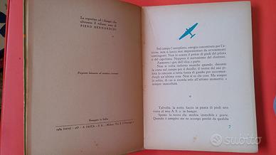 Si vendono in blocco "Ali e alati" di Rodolfo Fumagalli, L'eroica, 1930, brossura; "Prese di quota" di Giuseppe Mormino, Corticelli, 1939, brossura; "Vita dell'uomo volante" di Menka, Casa editrice Universo, 1952 (ma per tema e spirito riferibile all'epoca prebellica e bellica), rilegato. Condizione ottima per tutti, solo Fumagalli ha un lieve difetto in copertina (come da foto) e le pagine un po' ingiallite dal tempo (ma ancora da tagliare, tranne le primissime). Su richiesta, anche quotazione individuale.