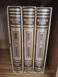 Causa lavori di ristrutturazione in casa vendo Lotto di 67 volumi Treccani tutti nuovissimi e mai sfogliati. Vendo solo in blocco ad appassionati genere o collezionisti Treccani al prezzo di 3000€ non trattabili. Elenco Volumi: -Enciclopedia completa Treccani-57 volumi fino ad appendice VI del 2000 -Enciclopedia dei Papi 3 volumi -Roma antica 1 volume -Il Conclave di Papa Francesco 1 volume -San Francesco d'Assisi 1 volume in pelle bianca -Dentro Roma 1 volume fotografico -150 anni Unità d'Italia 3 volumi Solo ritiro diretto a Mesagne.