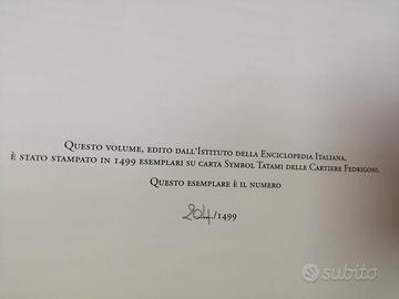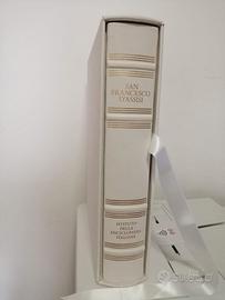 Volume Treccani "San Francesco d'Assisi", in edizione di lusso nella sua custodia interamente in pelle bianca, edizione a Tiratura limitata, questa è la copia n 204 di 1499, vedi ultima foto. Edizione del 2019. Mai sfogliato , qualche segno di polvere perchè esposto in libreria aperta, ma per il resto nuovissimo. Pagato come da fattura 1500€ vedi ultima foto. Il volume presenta fregi dorati sul piatto e sul dorso, e misura cm. 35 x 30,5 x 8 - Peso totale Kg. 5,500. Aggiungere la spedizione.